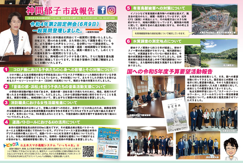 引き続き、皆様のために、地域のため、もっと元気な浜松のために、謙虚に懸命に、そしてしなやかな姿勢で取り組んでまいりますので、ご支援をたまわりますよう、よろしくお願い申し上げます。